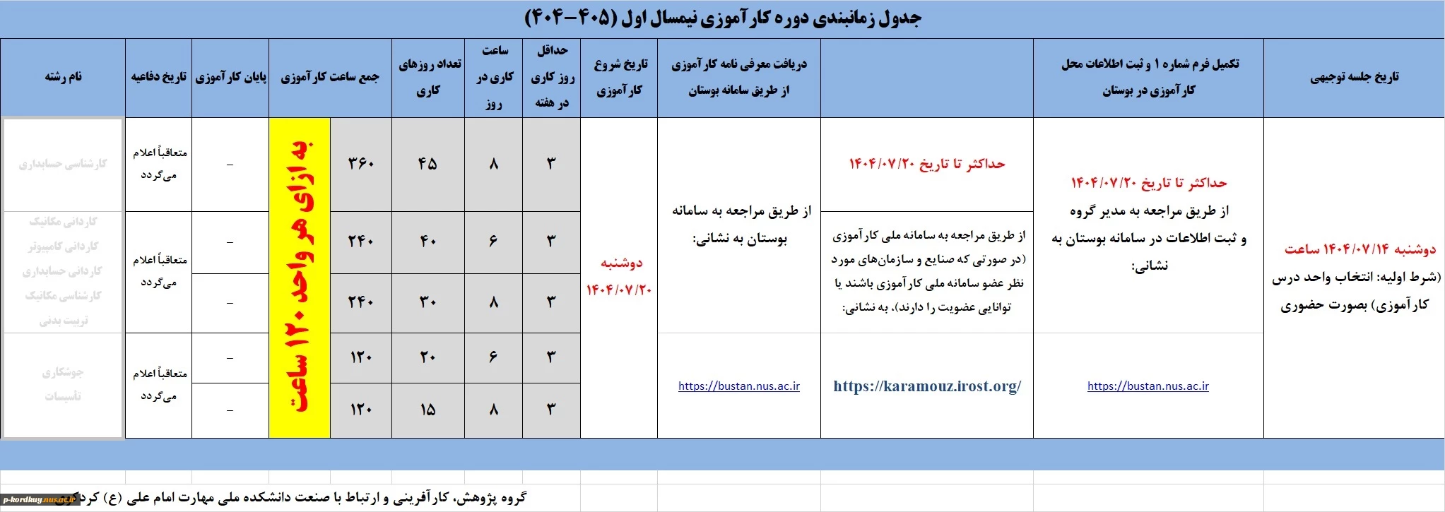 امتیاز دهید : برگزاری جلسه توجیهی کارآموزی نیمسال اول تحصیلی 1403-1402 بصورت حضوری 4 چهارشنبه 12 مهر 1402 ساعت 13:15
